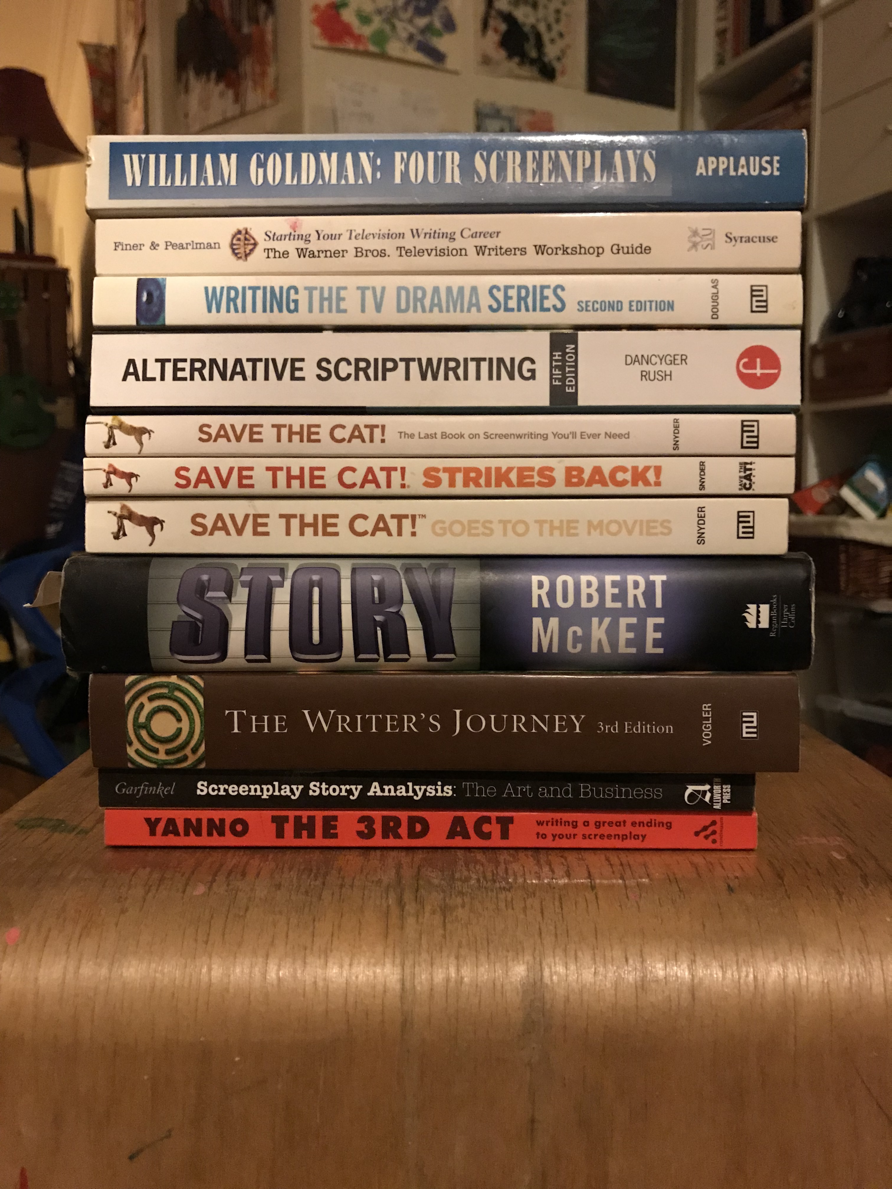 When I first started writing screenplays I was stymied by the formatting. So I bought a book. And another. And another. And I quickly learned that the formatting was the easy part, it was the writing something special that was hard. So I bought more books, and whenever I’d get stuck writing I’d turn to one of the books.